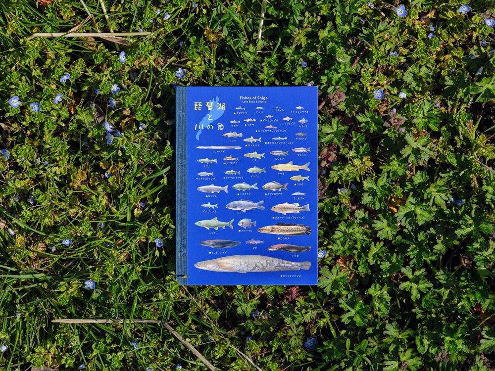 琵琶湖と滋賀県内の川に生息する77種の魚が集結した、まるで図鑑のような表紙のノートで、魚それぞれの名前を記載しています。6.5mmの横罫線で、持ち歩きやすいA6サイズです。