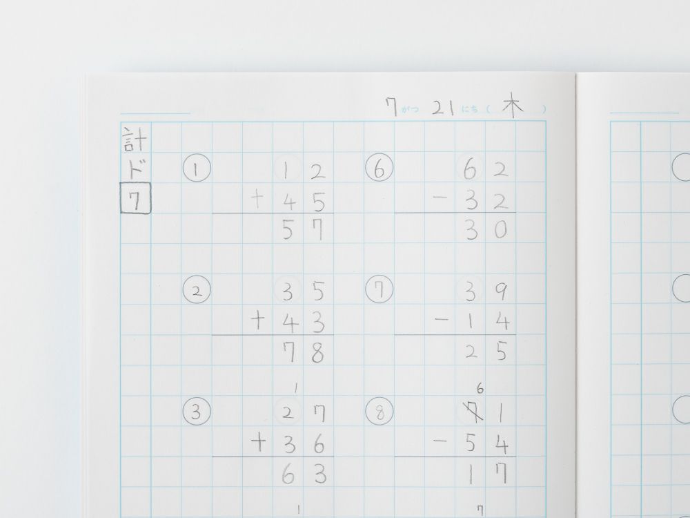 小学生の子どもを持つ従業員が、子どもが一生懸命に筆算用の線を引いている姿を見て「ノートに線が印刷されていれば助かるのに」と、ひらめきました。定規の扱いに慣れない小学低学年をサポートし、まずは上手に線を引くことよりも、集中して計算に取り組めるようにと考えたノートです。
