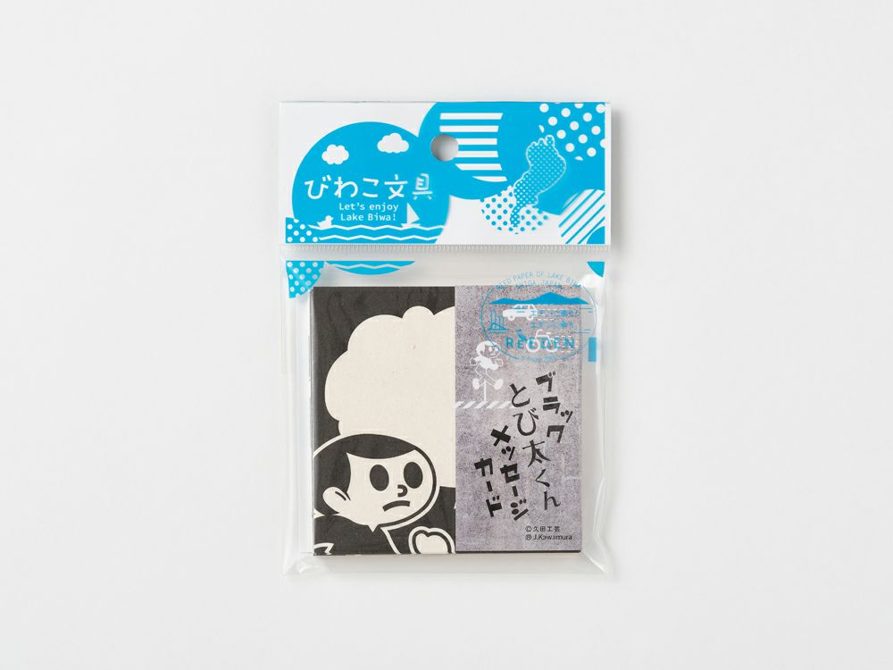 走るとび太くん・吹き出しのとび太くん・電柱のそばで交通安全を見守るとび太くんをデザインした、全3柄のメッセージカードです。ヨシの自然な風合いが感じられる紙に印刷しています。今にも飛び出しそうな「とび太くん」が思わず目に止まるので、お急ぎの用件のメモにおすすめです。